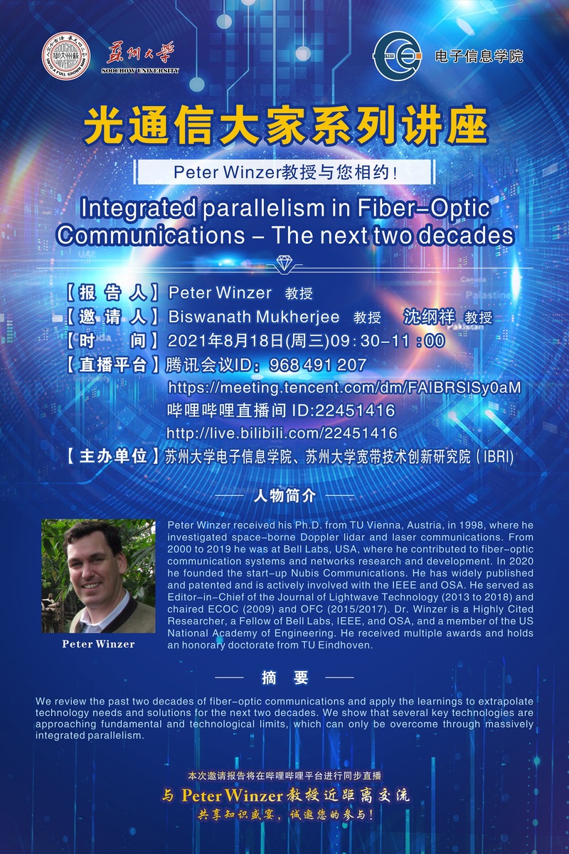光通信大家系列讲座|Peter Winzer教授与您相约 !
